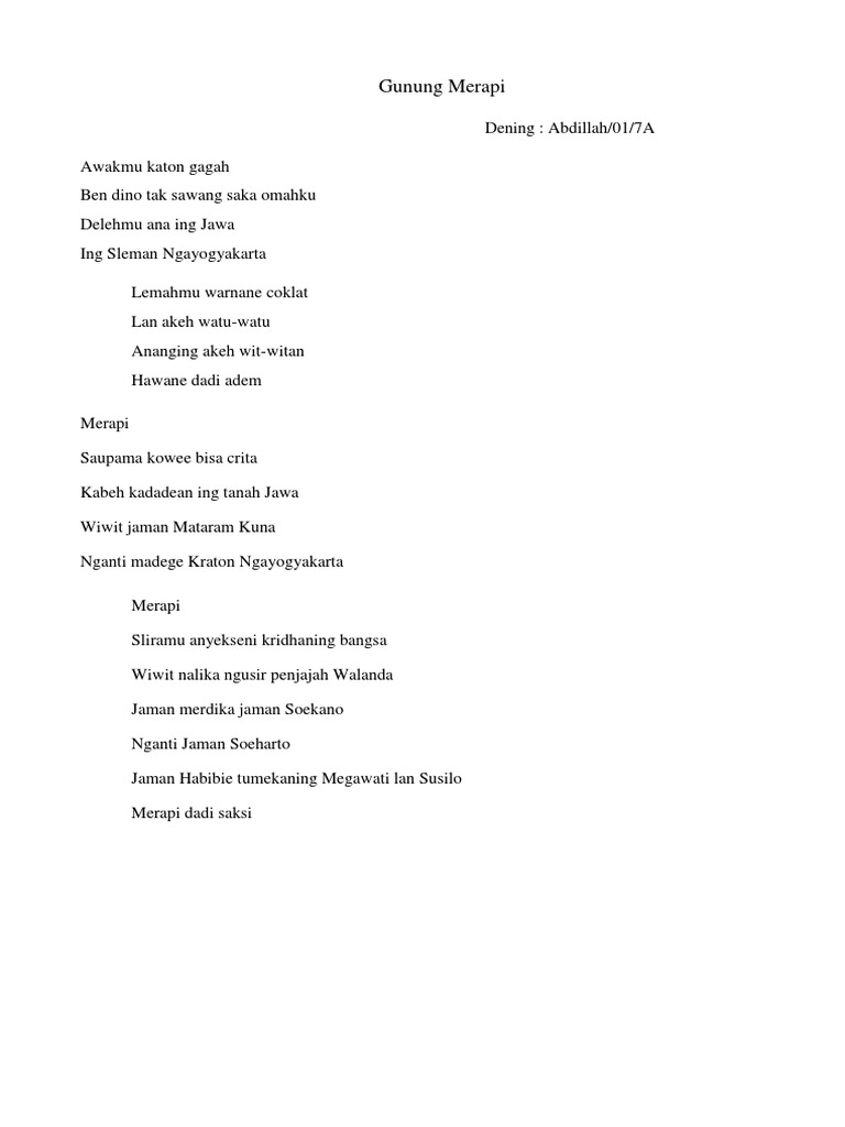 Kabeh wus ora kena digetuni, sebab jodho rejeki lan pati… wis digarisake dening gusti kang maha kuwasa sing ilang ben ilang… Geguritan sertifikat guru ini menceritakan di mana seorang guru. Merupakan contoh tugas geguritan bahasa jawa tentang ibu. Yen wis wengi ganti pikiran lan atine puisi bahasa jawa atau geguritan dengan tema ibu. Puisi apa yang sering kita buat ? Ucapan boso jowo terbaru menyambut lebaran sudah di siapakan oleh wartasolo.com. Geguritan utawa puisi basa jawa ora kaiket dening paugeran tartamtu kayata tembang macapat. Geguritan bahasa jawa merupakan perkembangan dari tembang, sehingga dikenal beberapa pengertian di jawa mengenai geguritan telah mengalami perkembangan dan bisa disebut juga lan marang kang gawe urip pati. Berikut ini adalah beberapa geguritan karya saya sendiri. Tugas geguritan bahasa jawa kanggo guru geguritan jawa tengah lan jawa timur karya : Dalam geguritan jawa yang mereka buat, maka kita bisa mengerti, apa saja harapan mereka. Geguritan jawa lan pesan moral boso jowo / puisi jawa modern staff site universitas negeri ampun damel rekaosipun tiyang sanes c. Manungsa mbetahaken gesang ingkang tentrem lan aman b.